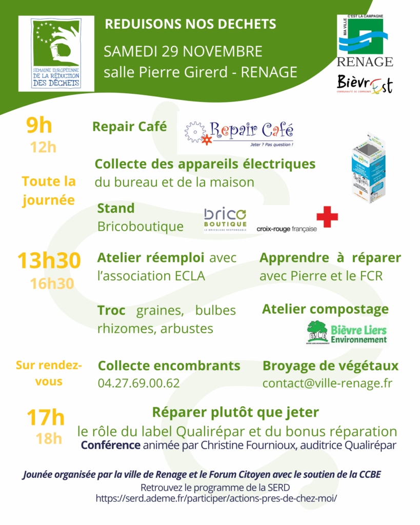 La Ville de Renage prépare une nouvelle édition de son exposition consacrée aux artistes et passionnés locaux. Peinture, sculpture, dessin, photo, bijoux, livres, couture… tous les talents sont les bienvenus ! Samedi 29 & dimanche 30 novembre 2025 10h–12h & 14h–17h Salle Jean Aluigi – Entrée gratuite Vous habitez Renage ou les environs et souhaitez […]